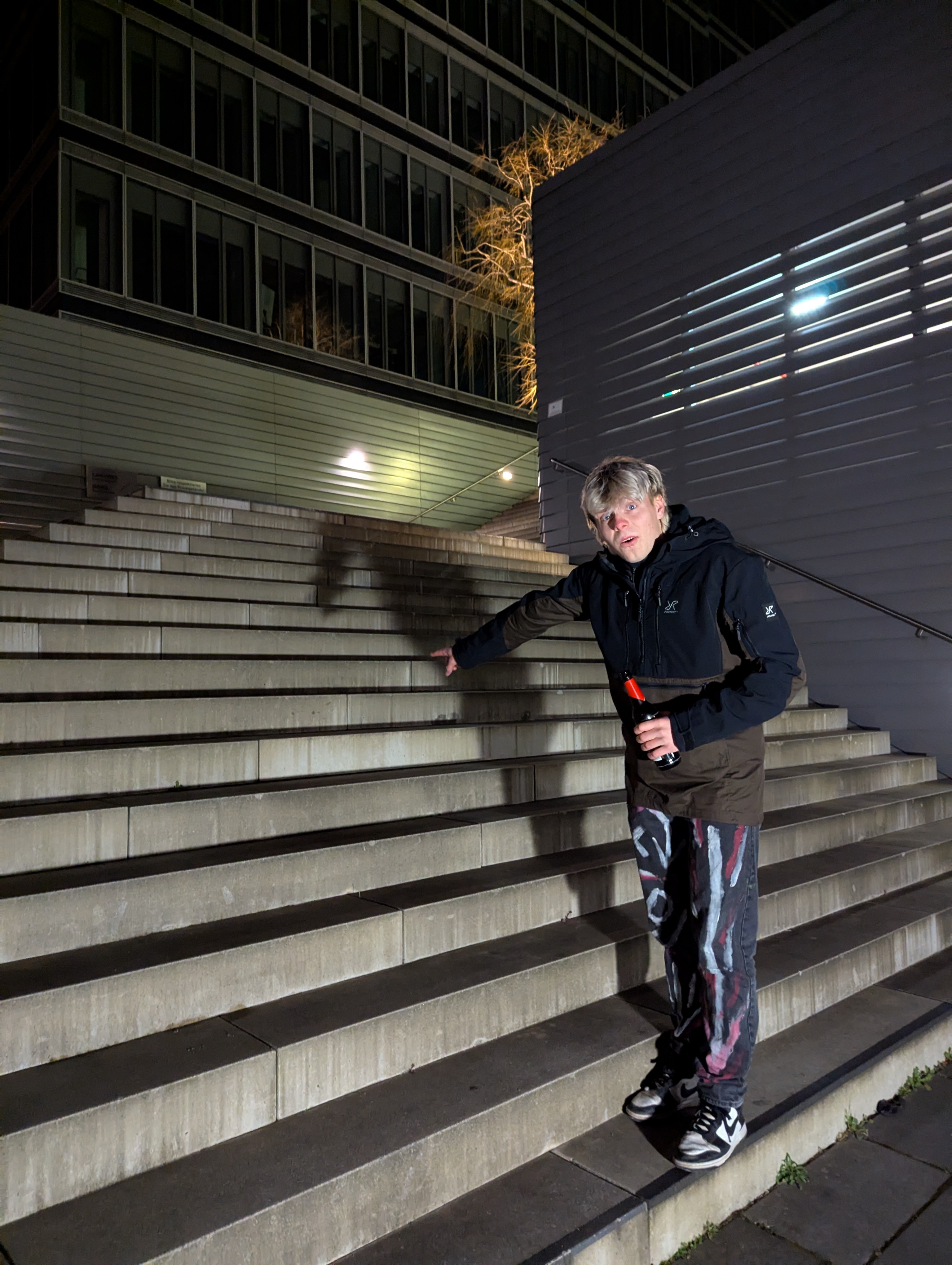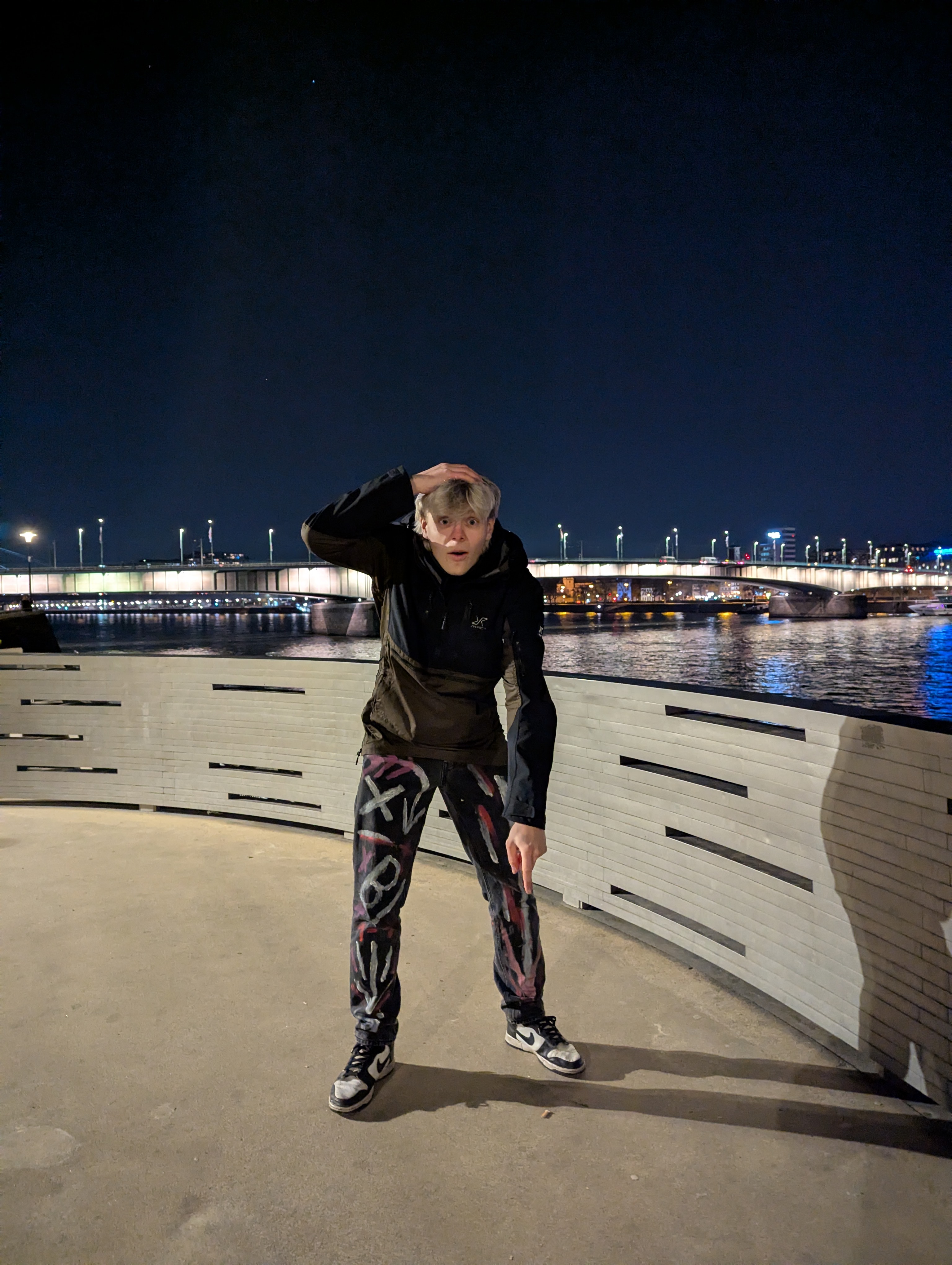 Zaslal fotografii z noční procházky. Hoodie zapnutý. Pohled stranou. Stromy za ním svítí jako kulisy k finálnímu boji. Lukáš nepotřebuje komentář — fotka mluví sama. Organizátor ji obdržel ve 23:47 a okamžitě schválil. Let him cook.